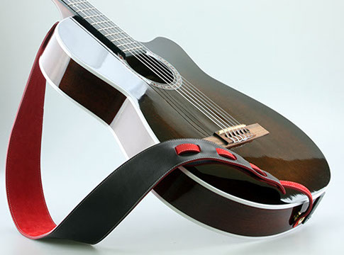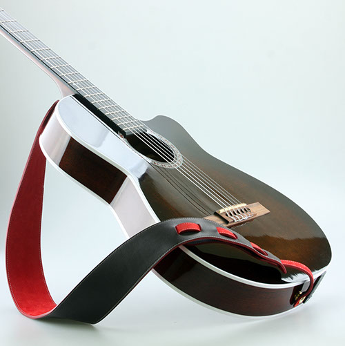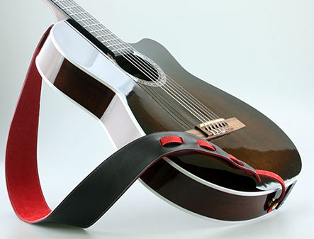 Chaque sangle est une pièce unique, qui peut selon vos envies être assortie à votre guitare par le choix des cuirs, des teintes, des coutures.